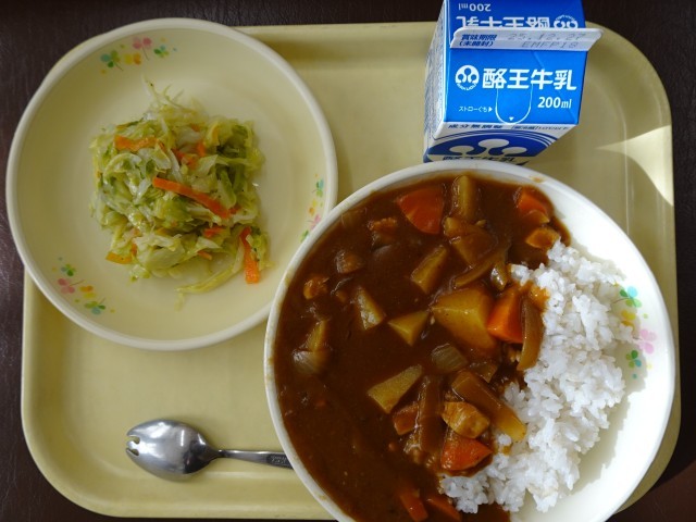 本日の給食は、みんな大好きカレーライスでした。