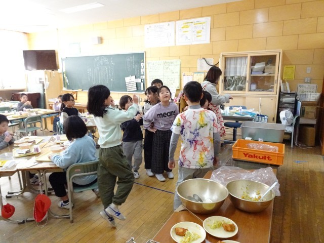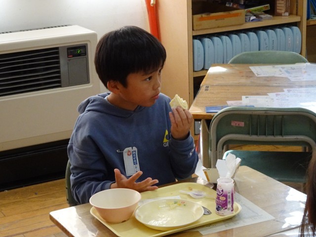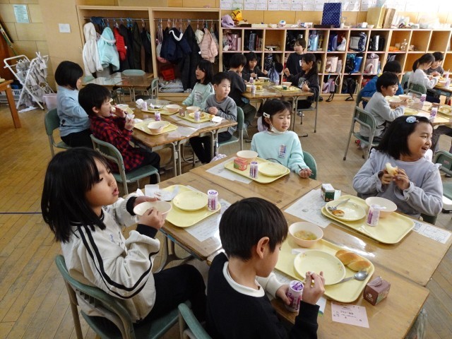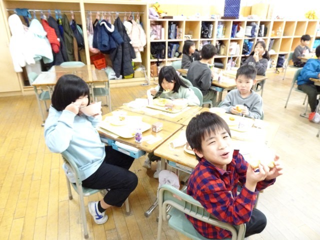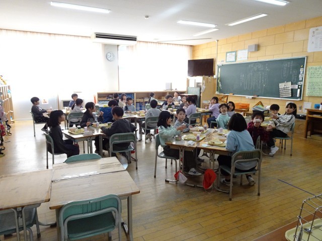 みんな嬉しそうに給食を食べています。