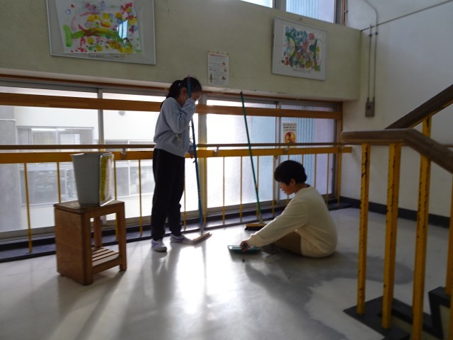 あるクラスでは、雑巾真っ黒選手権が開催されていました!!!