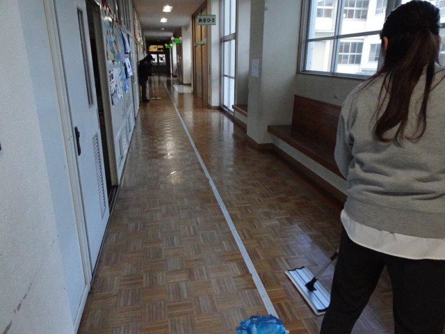 せっかくワックスをぬった床に、乾く前に足を踏み入れると……。