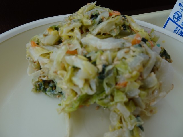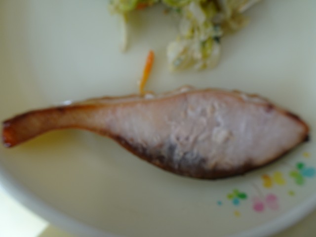 ごはん、ぶりの照り焼き、野菜のごま味噌和え、みそ汁、牛乳でした。