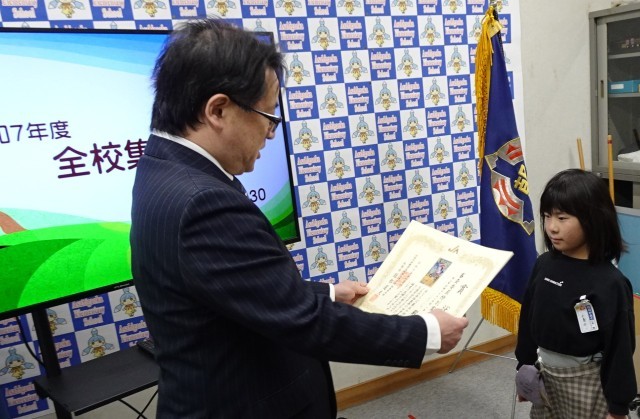 本日は、今年度最後の全校集会をリモートで実施しました。