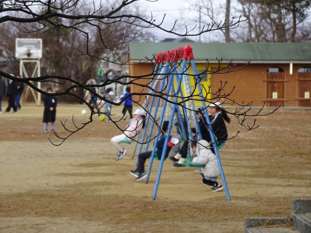 子どもたちは校庭に出て,元気いっぱい遊んでいました。