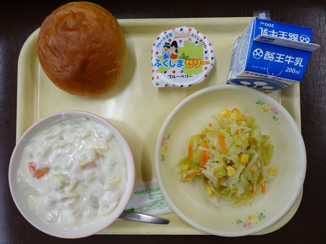 黒丸パン、白菜のクリーム煮、野菜サラダ、牛乳でした。
