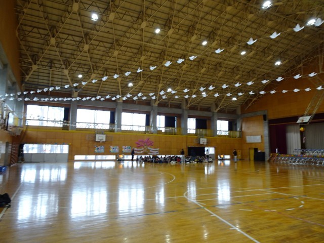 体育館の飾り付けも終わり、本番を待つばかりです。