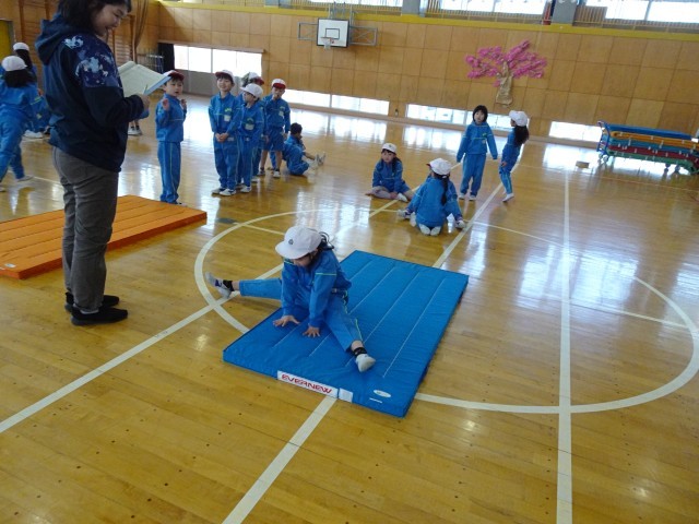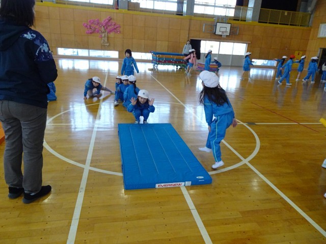 体育館では、1年生がマット運動をしていました!