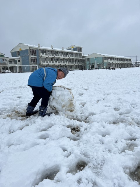 子ども達が転がす雪玉は、みるみる大きくなりました。校庭のあちらこちらで、力いっぱいの大玉転がしをして格闘する様子も見られました。