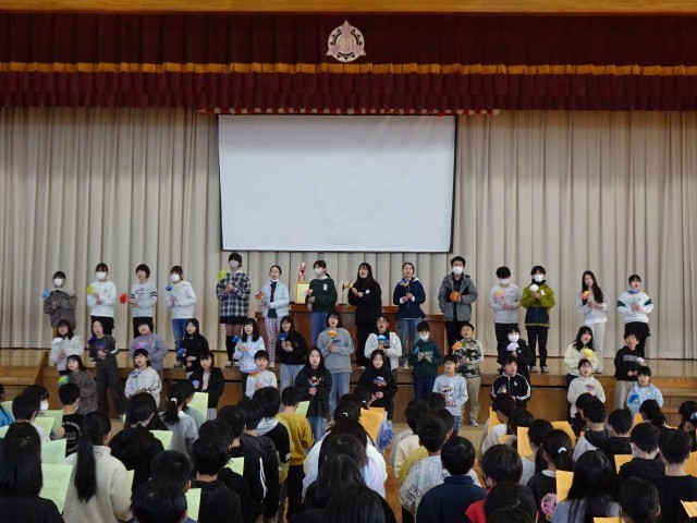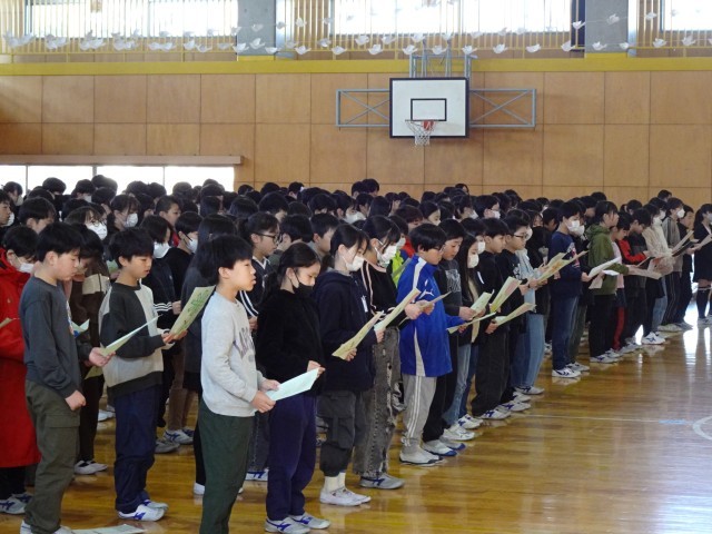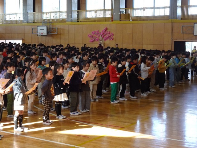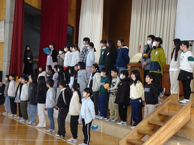 その後で、特設合唱部のリードにより、全校で「花が咲く」を大合唱しました。