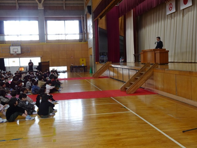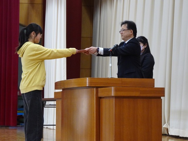 1年から5年を代表して5年児童に、修了証書を手渡しました。