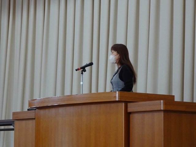 校長先生の話に続いて、同窓会を代表してPTA会長さんよりご挨拶をいただきました。