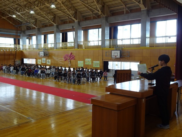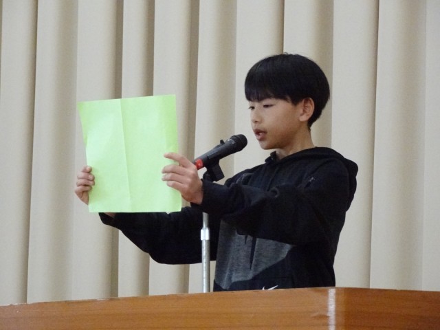 さらに、代表児童が、「同窓会入会のあいさつ」を立派に読み上げました。