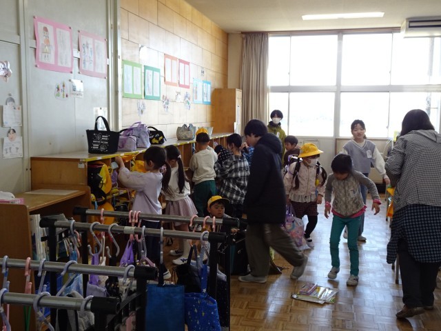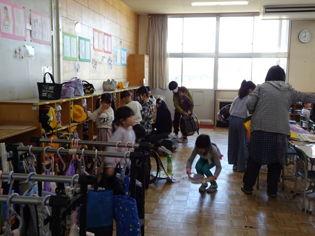 最高学年の6年生は、毎朝、1年生教室で朝の準備を手伝ってくれています。
