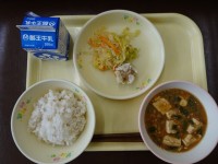 本日は、『こおりやま「お米の日」』メニューです。ごはん、納豆、切干大根の含め煮、南蛮汁、牛乳でした。和食のよさを改めて感じることができるメニューでした。