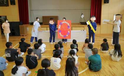 全体会では、劇やクイズで歯や歯磨きへの興味・関心を高めてくれました。