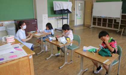 2度目の歯磨き教室の2年生は染め出しにも慣れましたが、「朝、ちゃんと歯を磨いてきたのに赤くなった。」「えーなんで。」と賑やかでした。