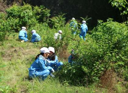 後半は、3・4・5・6年生が力を合わせてコウゾの木の下草刈りを行いました。