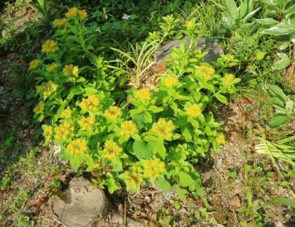 校長室前の花壇に見たことがない黄色い花が咲いていました。アプリで調べてみたら、高山植物の「イワベンケイ」ということが分かりました。