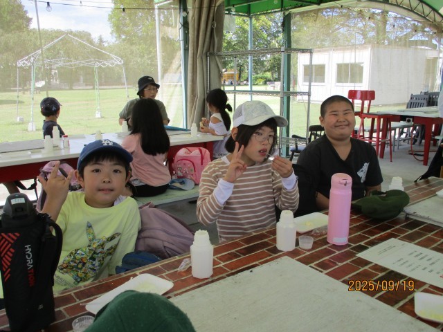 牧場では、広々とした自然の中で楽しい活動を行いました。特に、牛乳から手作りするバター作り体験は大人気!自分たちで作ったできたてのバターを試食し、「おいしい!」と笑顔があふれました。