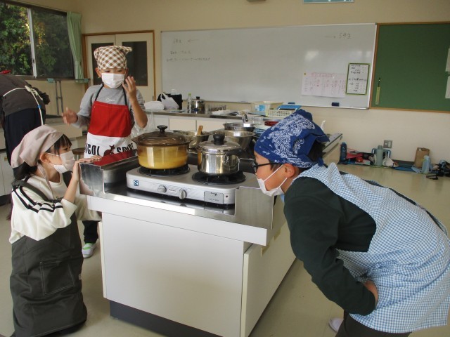 本日、5・6年生が家庭科の授業で、調理実習を行いました。