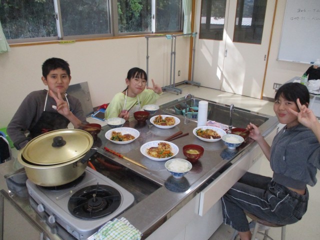 学年ごとに学習内容が異なるため、それぞれ別のメニューに取り組みましたが、実習後には互いの調理したものを持ち寄り、豪華で美味しい「合同ランチ」が実現しました!