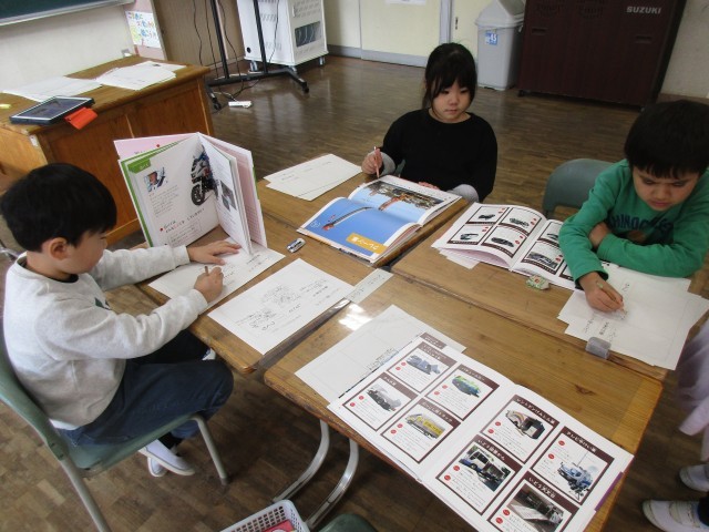 1年生 オリジナル自動車図鑑づくりに挑戦中!