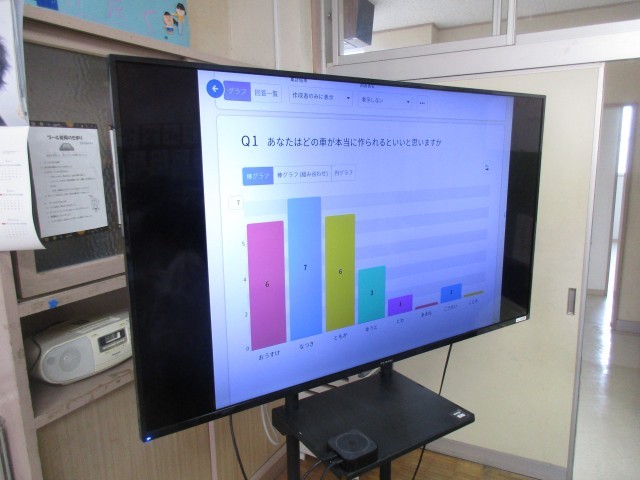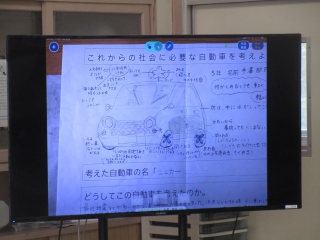 学習のまとめとして、「これからの社会に必要な自動車」をテーマに、子どもたち一人ひとりがデザインや性能を考え、発表会を実施しました。