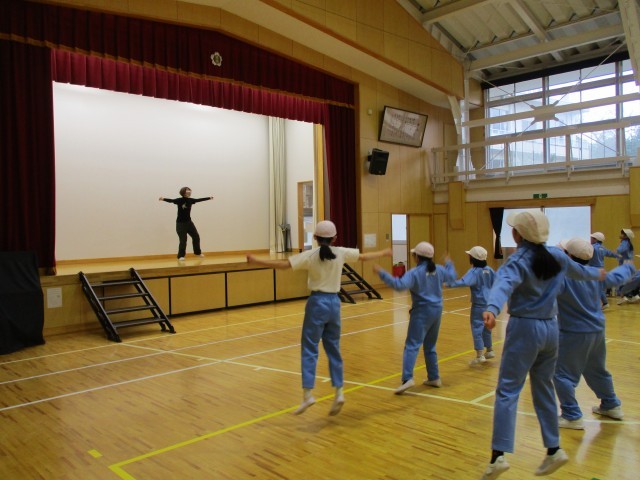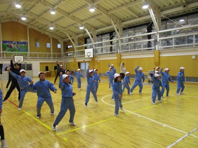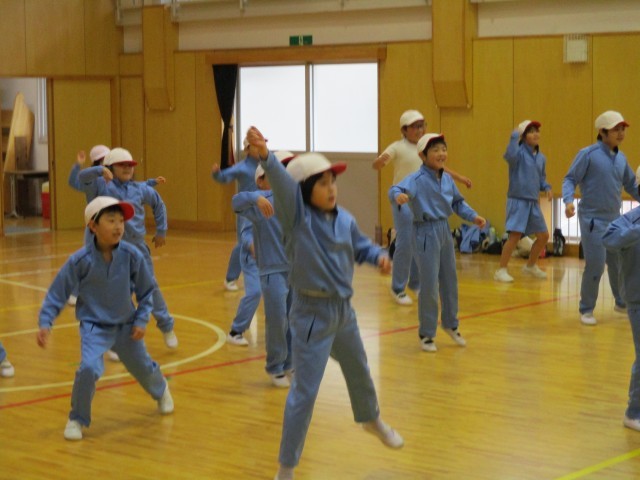 先生の明るく、熱心なご指導のもと、体を大きく使ったダイナミックな動きを学び、体育館には活気あふれる音楽と、楽しそうな子どもたちの笑顔が広がりました。