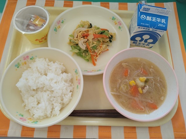 今日の献立は「ごはん、牛乳、納豆、千草和え、道産子汁」です。 納豆には「粒」と「ひきわり」があります。粒納豆は、皮が付いたままの大豆をそのまま蒸して発酵させるので、食物繊維が豊富です。一方、ひきわり納豆は、大豆を細かくひき割り、皮を取り除いてから発酵させるので、糸引きが強く、消化が速いという特徴があります。