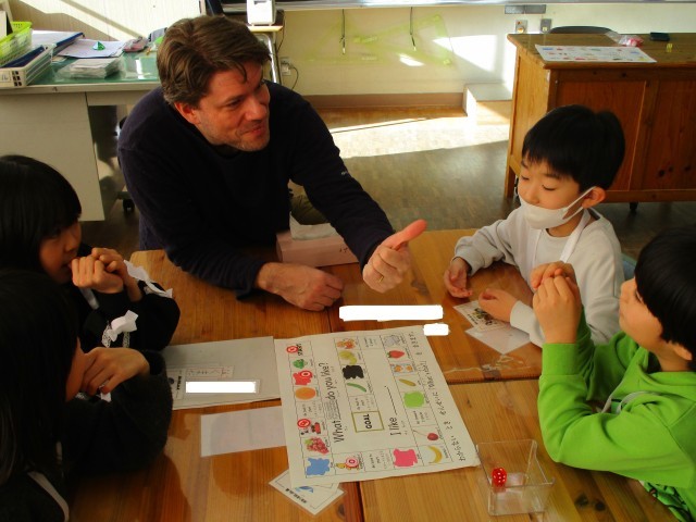 止まったマスの色を英語で答えたり、友達と好きな色を教え合ったりと、遊びを通して自然に英語に親しむ姿が見られました。教室中に元気な英語と笑顔が溢れる、楽しい1時間となりました。