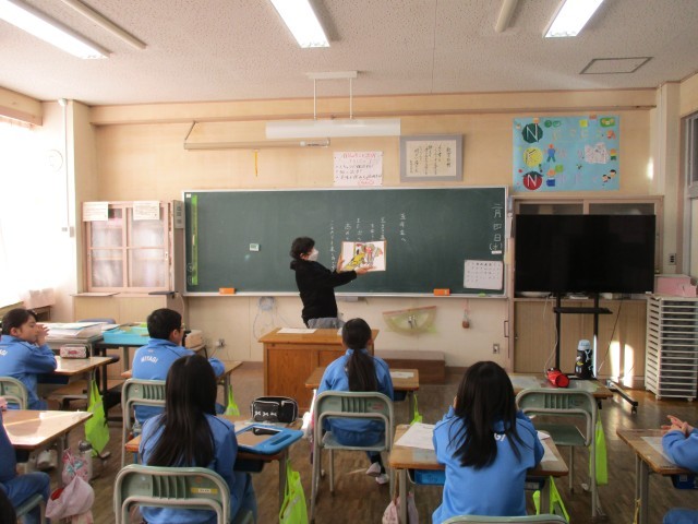 昨日の節分にちなみ、節分にまつわるお話や絵本を読んでいただきました。子どもたちは、昨日自分たちが追い払った鬼を思い出しながら、興味深く物語の世界に見入っていました。