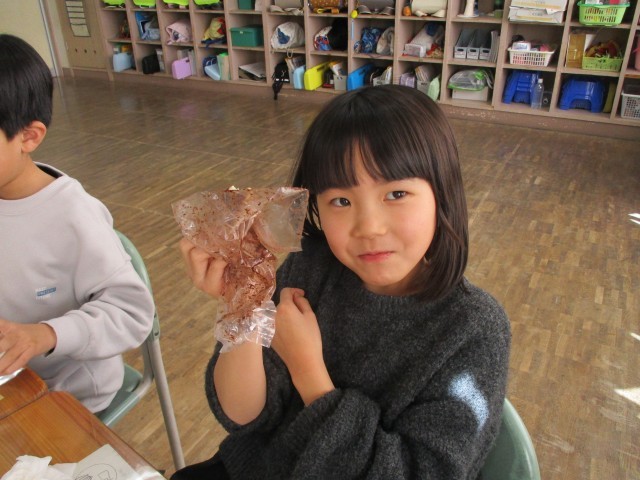 自分たちのために一生懸命作ってくれる様子を知り、いつもの揚げパンがより一層おいしく感じられたようです。口の周りにココアをつけながら、みんな満面の笑顔で頬張っていました。