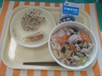 今日の献立は「麦ごはん、牛乳、納豆、五目金平、にんじんとじゃがいものみそ汁」です。「金平」の名は、江戸時代に流行した「金平浄瑠璃」の主人公である金太郎こと坂田金時の息子「坂田金平」に由来しているそうです。ごぼうのしっかりした食感や歯ごたえ、唐辛子のピリ辛さを坂田金平の強さや勇ましさに例え、「きんぴらごぼう」と呼ばれるようになったとされています。