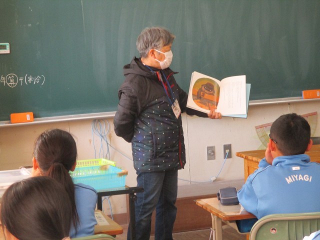 本日は図書ボランティアの皆様による読み聞かせが行われ、冬の物語や「ひな祭り」のお話を聞かせていただきました。