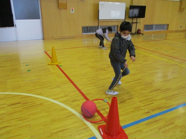今回は3班が企画を担当し、新競技「ボール引きリレー」に挑戦!慣れないボールの動きに悪戦苦闘する場面もありましたが、学年を越えて声を掛け合い、会場は笑顔と歓声に包まれました。全校で楽しい交流のひとときを過ごせました。