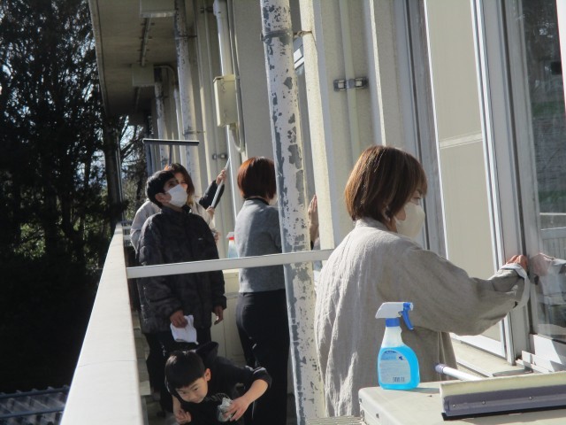 授業参観後には、PTA奉仕作業として窓ふきを実施しました。
