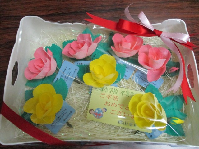 本日、「せいわ園」の職員の方が来校され、卒業生が胸元に飾る「コサージュ」を届けてくださいました。