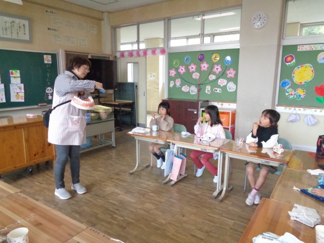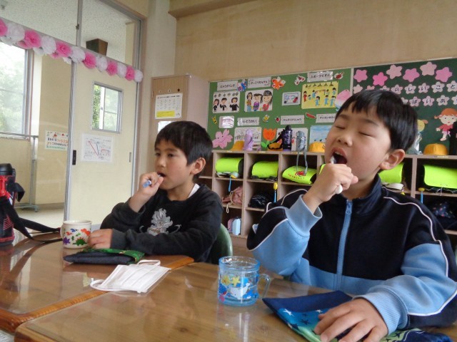 給食後には、必ず歯磨きタイムがあり、今日は保健の先生が来てくれました。
