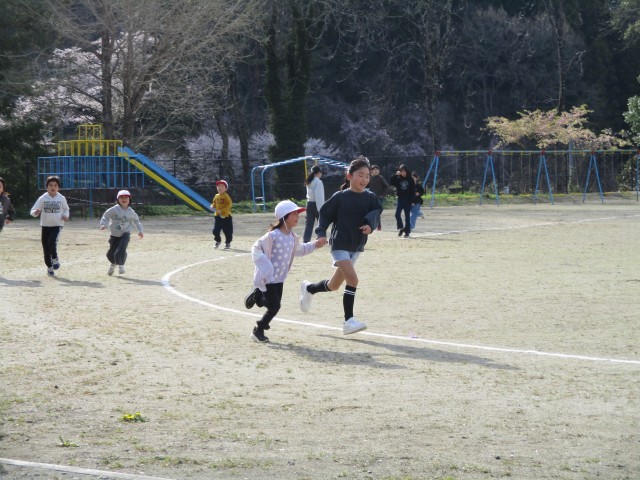 子どもたちは登校すると、すぐに校庭へ! 青空の下、お友達と一緒に気持ちよさそうに走る姿がたくさん見られました。