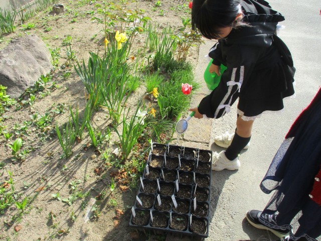 子どもたちは毎朝、「大きくなってね」と声をかけながら一生懸命に水やりをしてお世話をしています。自分たちの手で育てることで、命の成長を肌で感じているようです。