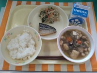 今日の給食は、ゆかりご飯、鶏肉の照り焼き、切り干し大根の胡麻和え、油揚げとわかめの味噌汁、牛乳です。
