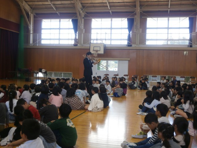 10月10日(金)の3校時に、アウトリーチプログラム~文化センター芸術宅配便~ 山形交響楽団ブラスクインテット演奏会が行われました。