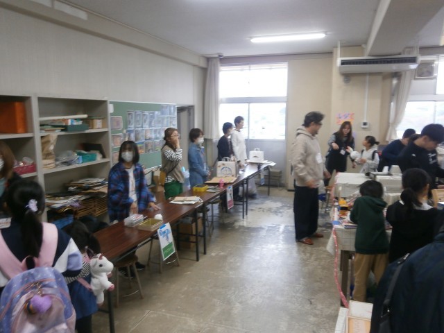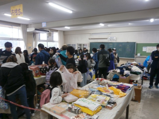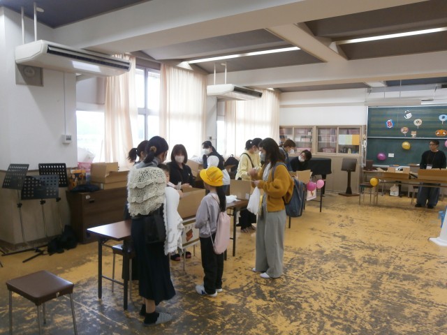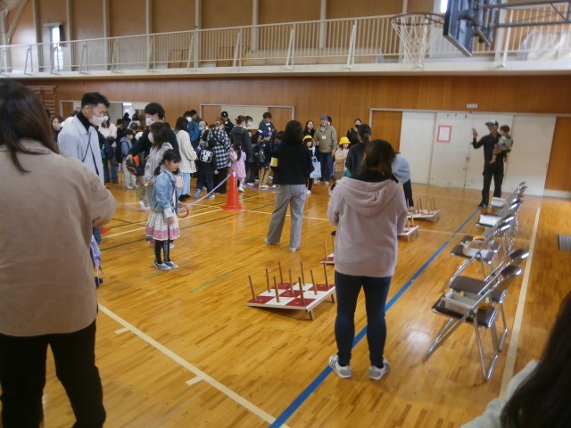 模擬店では、おにぎり、からあげ、ワッフルが販売され、縁日では、お菓子すくい、輪投げ、型ぬきが行われました。