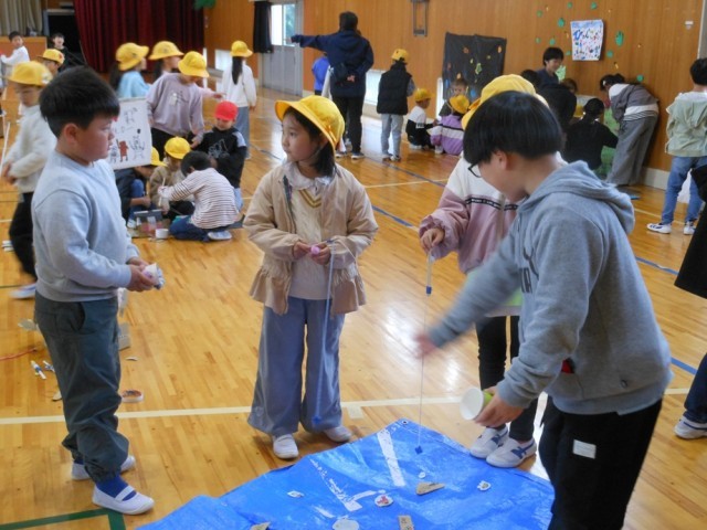 おもちゃは、生活科の時間に自分たちで作ったいろいろなおもちゃです。