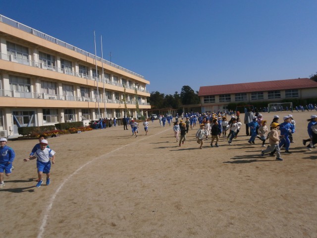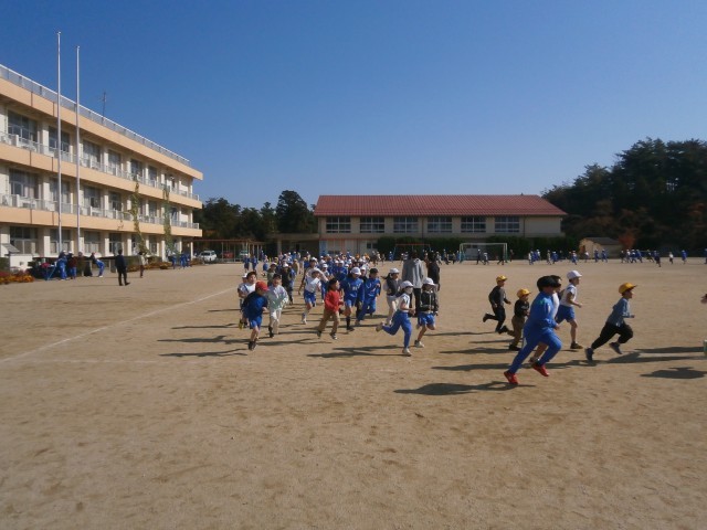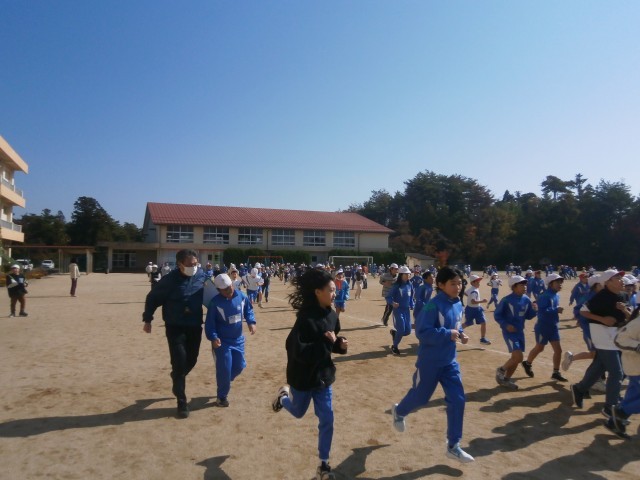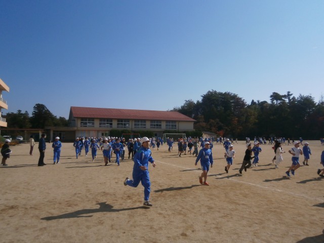10月30日(木)の業間の時間に、全校生が持久走記録会の練習を行いました。