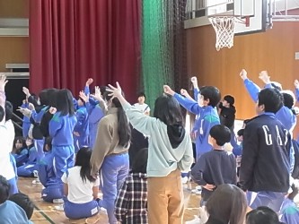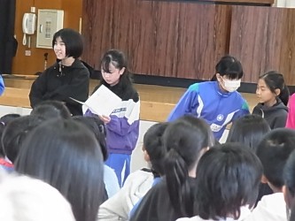 次は,運営委員会の発表がありました。今回は,ジャンケン大会でした。三人の先生方とジャンケンを行います。今回の優勝は。3年1組でした