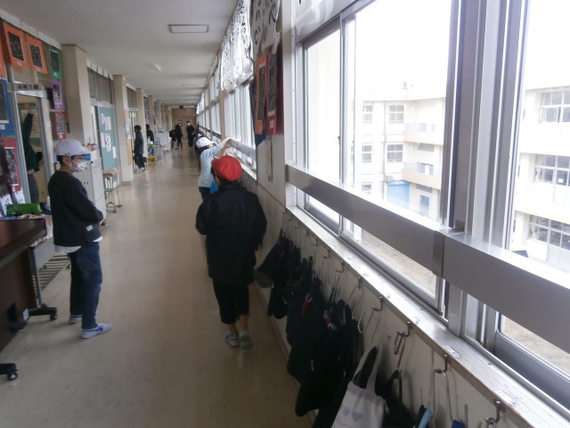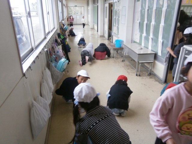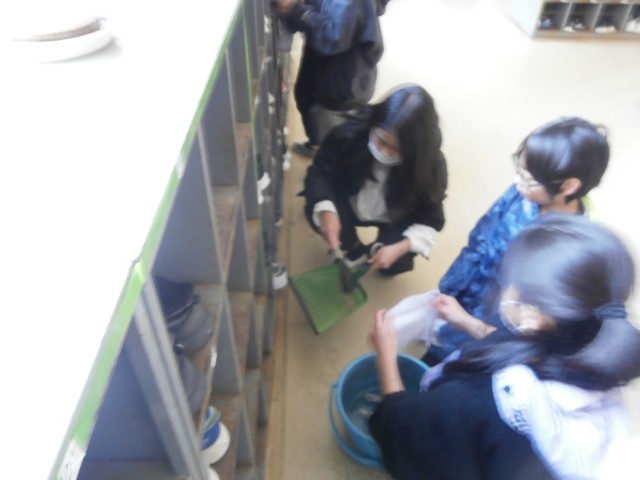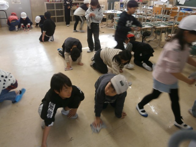 いすや机の脚のごみとり、床磨き、靴箱掃除などに一生懸命に取り組み、とてもきれいにすることができました。
