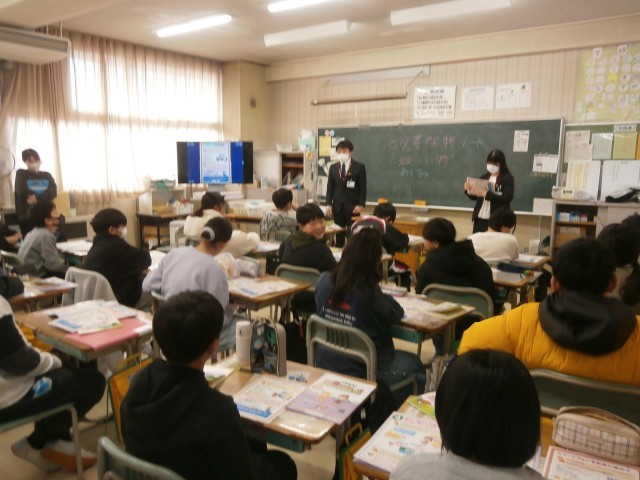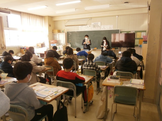 1月22日(木)の2~4校時に、5年生は、ゆうちょ銀行・郵便局のみなさんによる金融教育を行いました。
