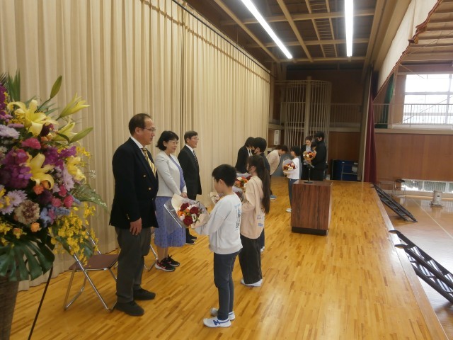 代表児童による花束の贈呈、転退職される先生方からの心のこもったあいさつ、