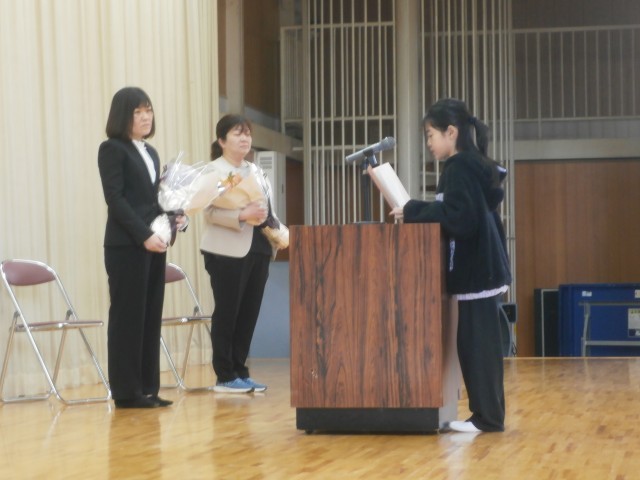 代表児童による転退職される先生方への感謝の言葉がありました。
