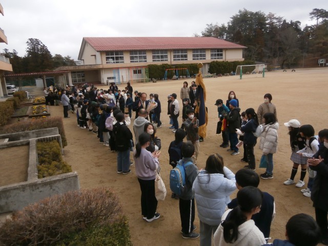 校庭でのお見送りの時は、涙を流し、別れを惜しむ姿が見られました。